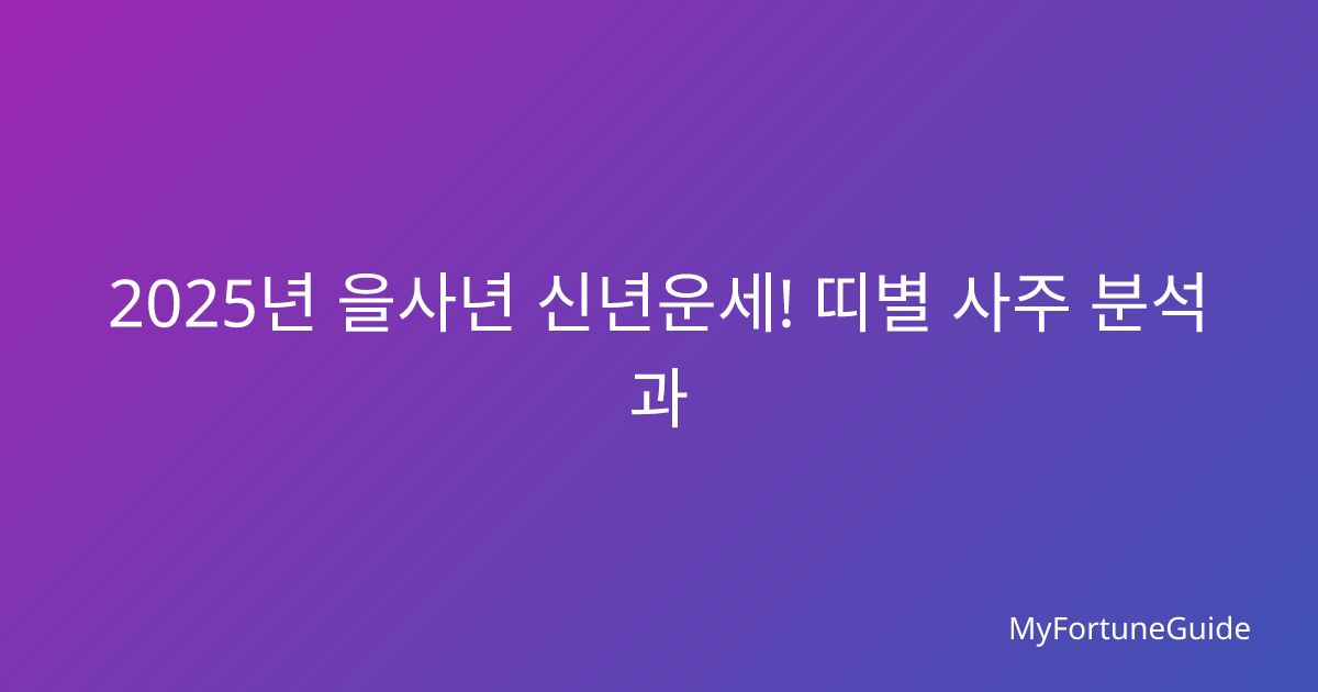 2025년 신년운세: 토끼띠의 운명을 바꿀 궁합과 직업운 대공개 2025년 을사년(乙巳年)을 맞아 토끼띠(묘띠) 분들의 새해 운세가 어떻게 펼쳐질지 사주명리학적 관점에서 상세히 분석해보겠습니다. 특히 사랑과 결혼, 그리고 사업과 직장에서의 성공을 좌우하는 궁합과 직업운에 대해 깊이 있게 살펴보겠습니다. 2025년 토끼띠 전체 운세 개관 2025년은 을사년(乙巳年)으로, 나무뱀의 해입니다. 토끼띠와 뱀띠는 육합(六合) 관계로, 토끼띠에게는 매우 길한 한 해가 될 것으로 … 더 읽기